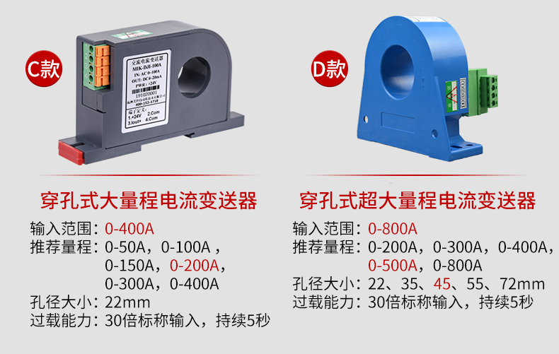 推荐量程:0~200A、0~300A、0~400A、0~500A、0~800A、0~1000A